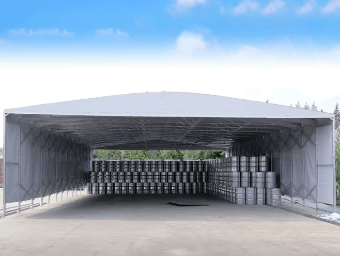 Raztegljivi potisno-vlečni šotori predstavljajo idealno rešitev za hitro postavitev pokritih prostorov kjerkoli in kadarkoli. Združujejo mobilnost, vzdržljivost in stroškovno učinkovitost, zato so odlična izbira za najrazličnejše namene – od logističnih centrov do gradbišč in prireditev.